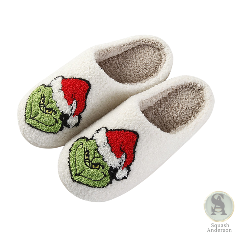 Bring festive comfort to your feet with the Christmas Grinch Pattern Winter Cotton Slippers. Designed with soft plush lining and a cozy cotton exterior, these warm slippers feature a playful Grinch-in-a-Santa-hat embroidery that adds holiday cheer to your loungewear. Perfect for staying snug on chilly mornings or gifting during the holidays!