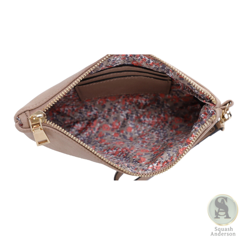 - Features: Zip top closure, gold-tone hardware, detachable shoulder strap