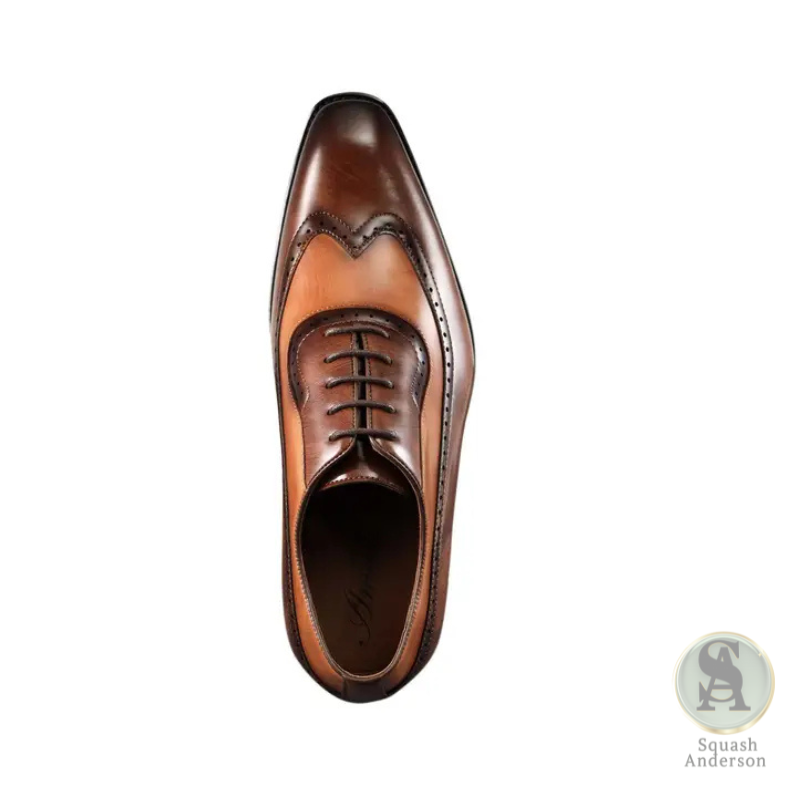 - Features: Wingtip brogue pattern, lace-up closure, burnished two-tone finish, cushioned insole