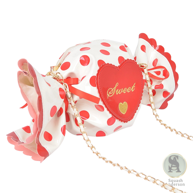 - Features: Candy-inspired design, polka dot print, detachable chain strap